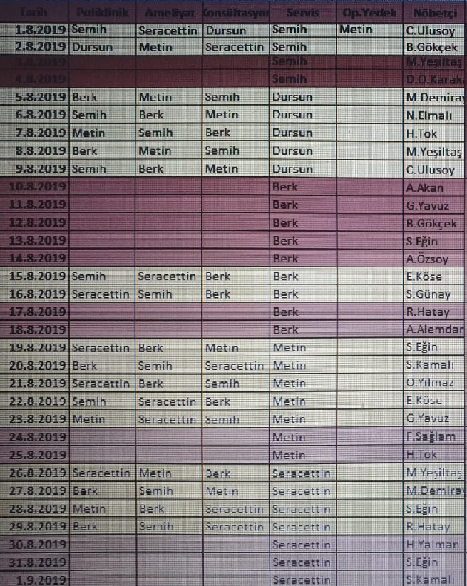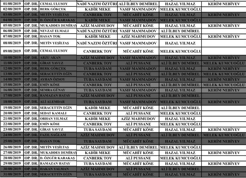 AĞUSTOS 2019 ASİSTAN NÖBET PROGRAMI