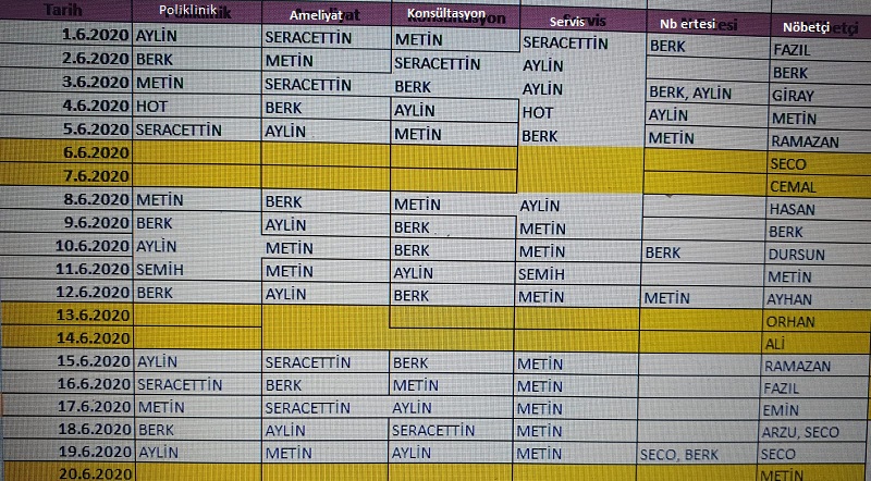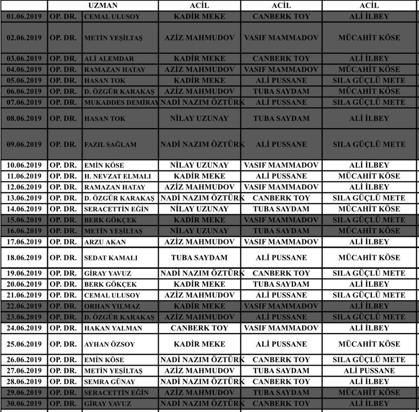 HAZİRAN 2019 ASİSTAN NÖBET PROGRAMI