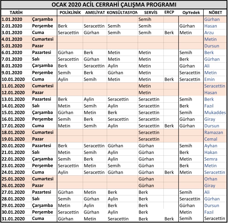 ARALIK 2019 ACİL ÇALIŞMA PROGRAMI
