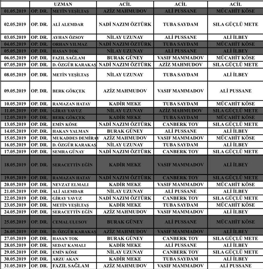 MAYIS 2019 ASİSTAN NÖBET PROGRAMI