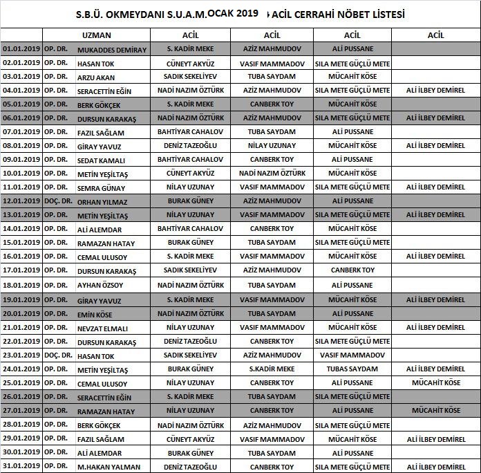 OCAK 2019 ASİSTAN NÖBET PROGRAMI