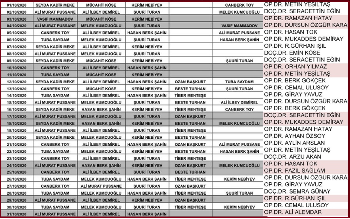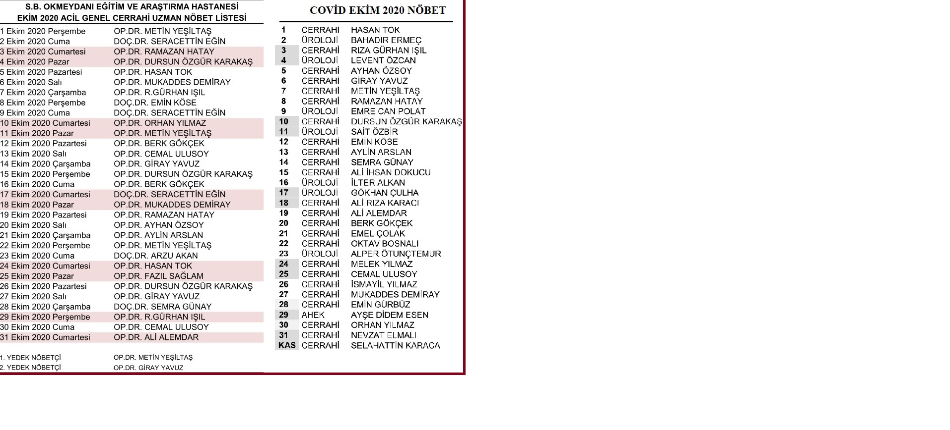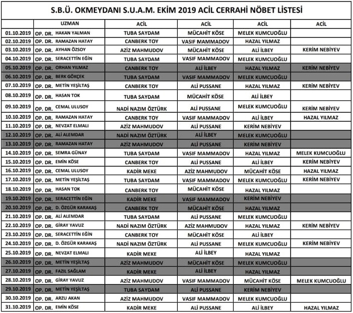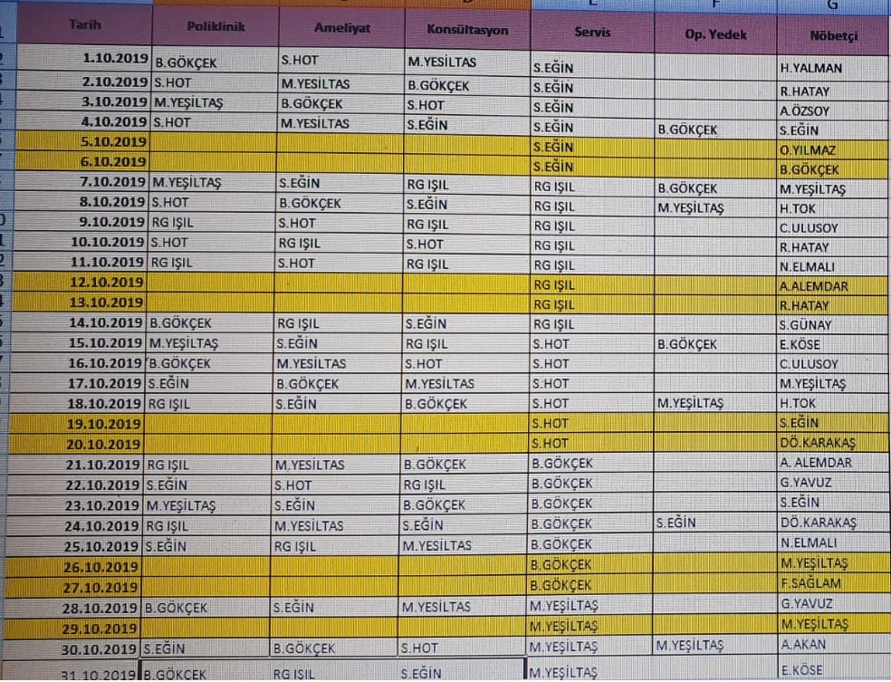 EKİM 2019 ASİSTAN NÖBET PROGRAMI