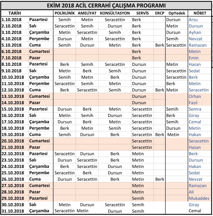 EKİM 2018 ÇALIŞMA PROGRAMI