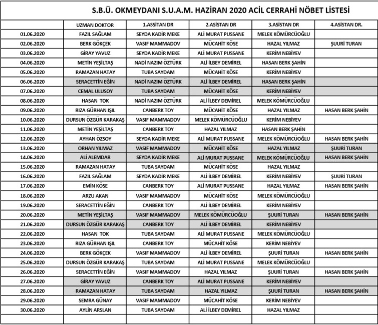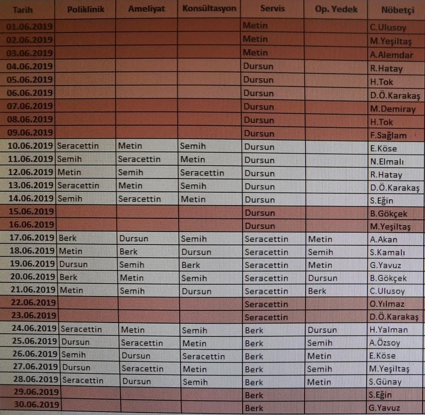 HAZİRAN 2019 ASİSTAN NÖBET PROGRAMI