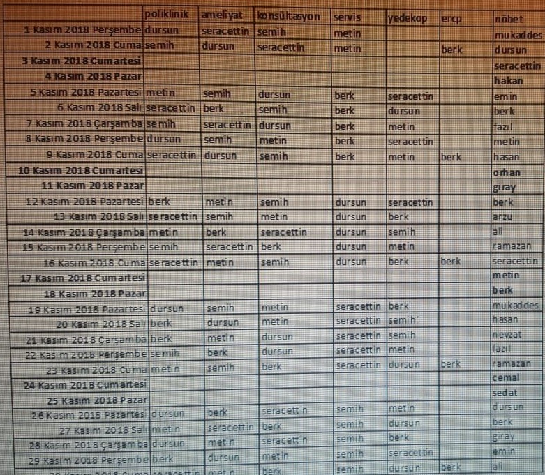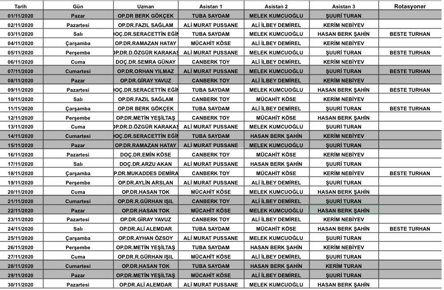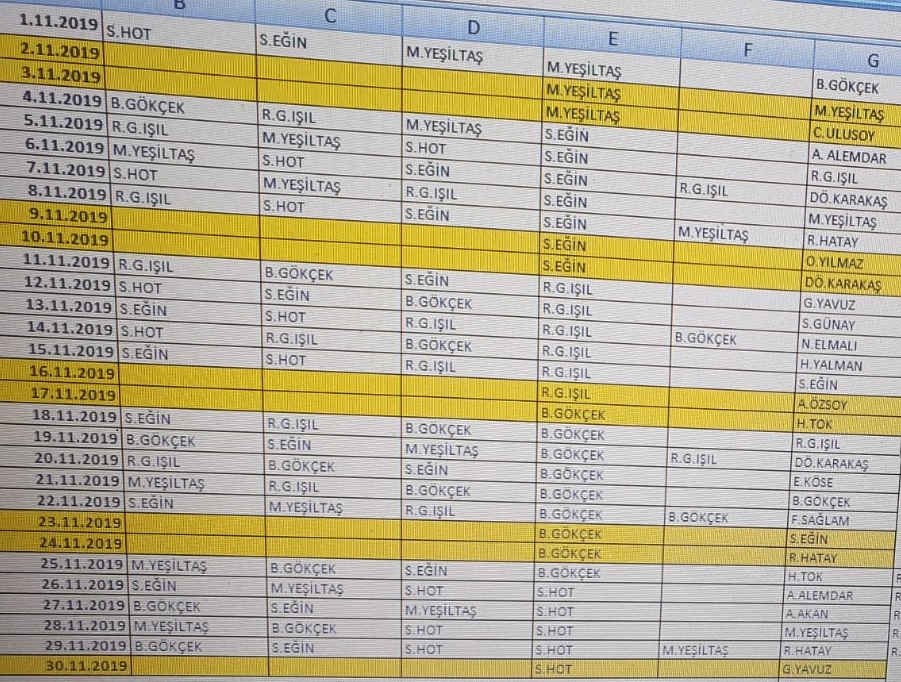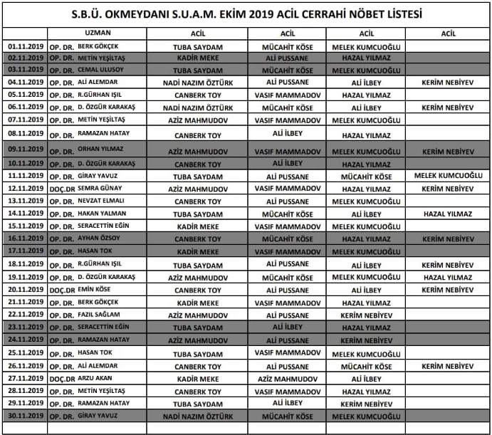 KASIM 2019 ASİSTAN NÖBET PROGRAMI