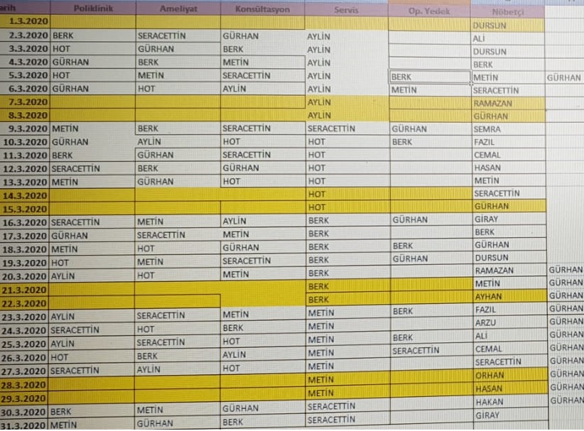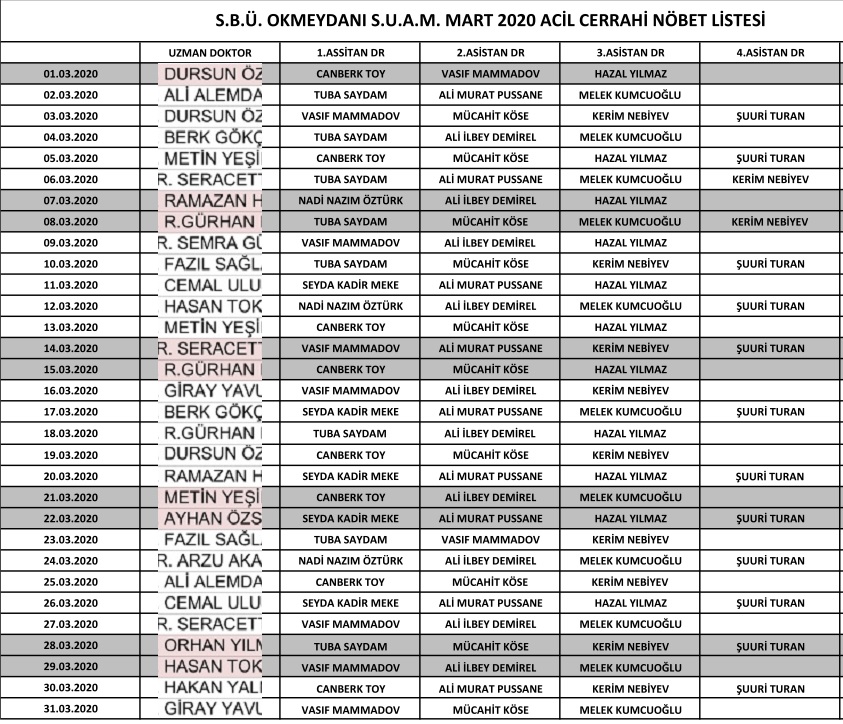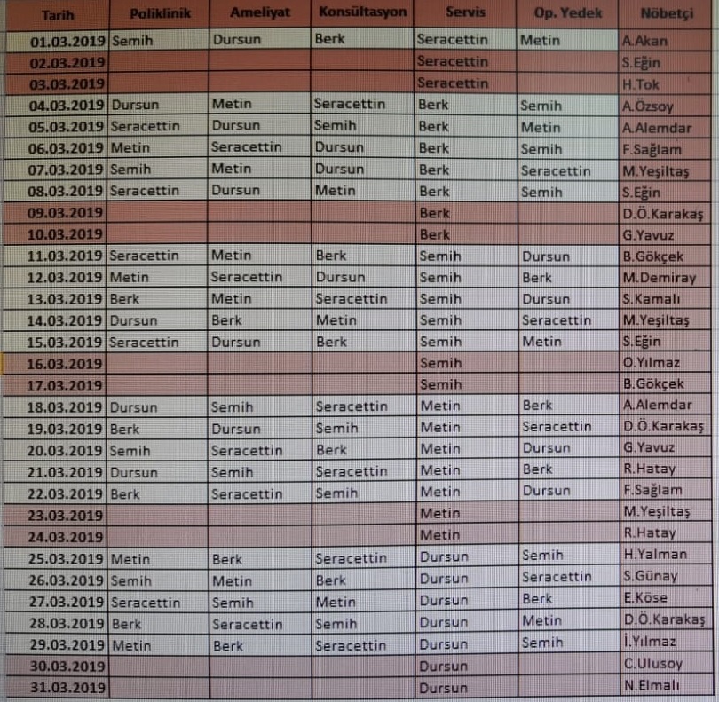 MART 2019 ASİSTAN NÖBET PROGRAMI