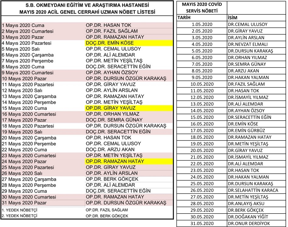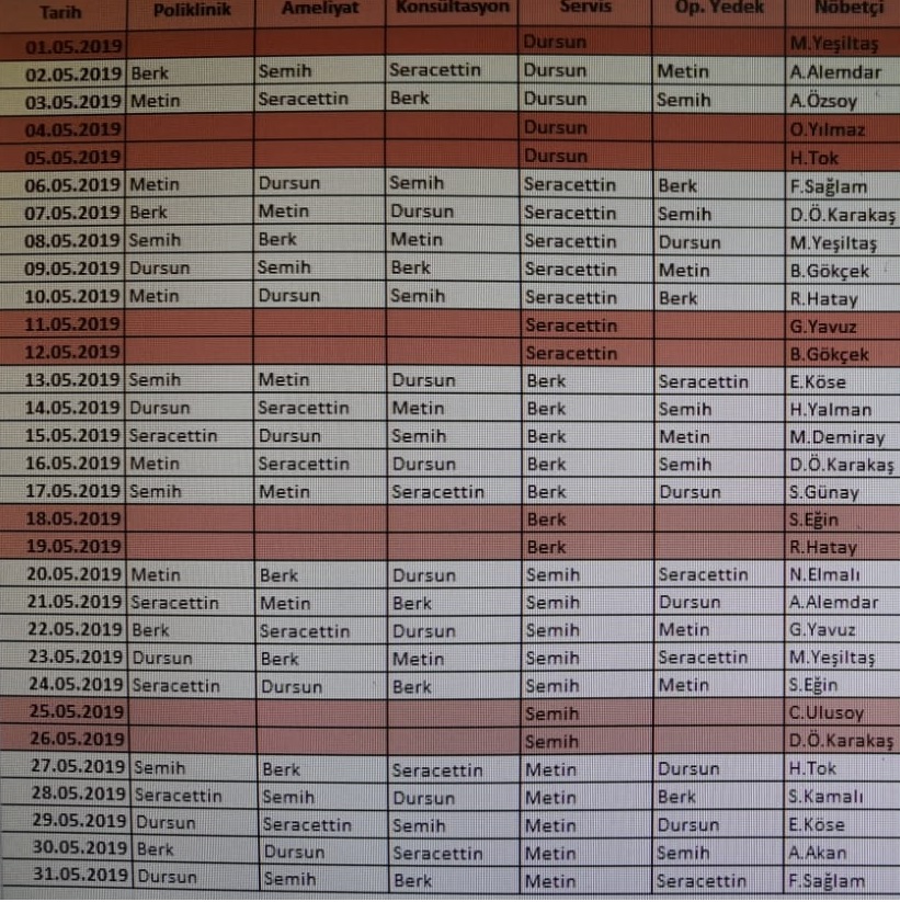 MAYIS 2019 ASİSTAN NÖBET PROGRAMI