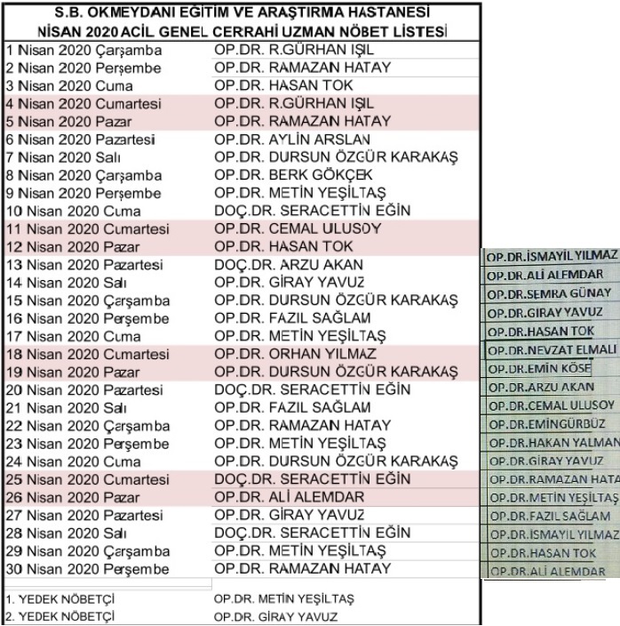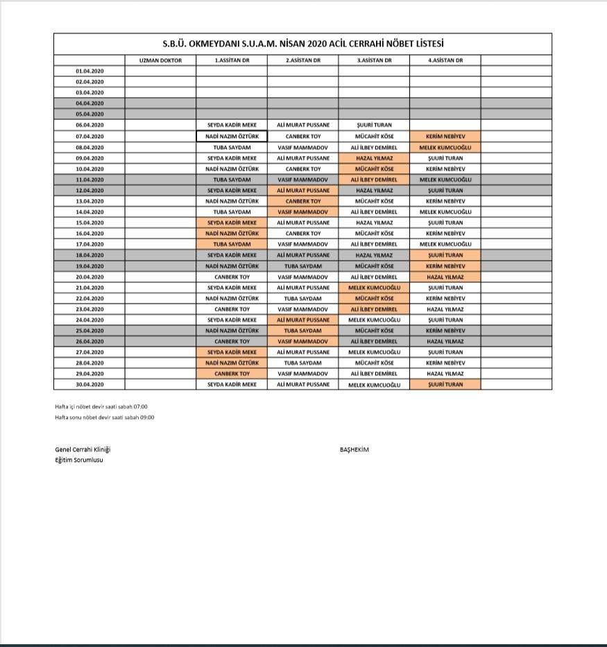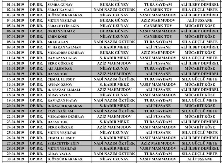NİSAN 2019 ASİSTAN NÖBET PROGRAMI