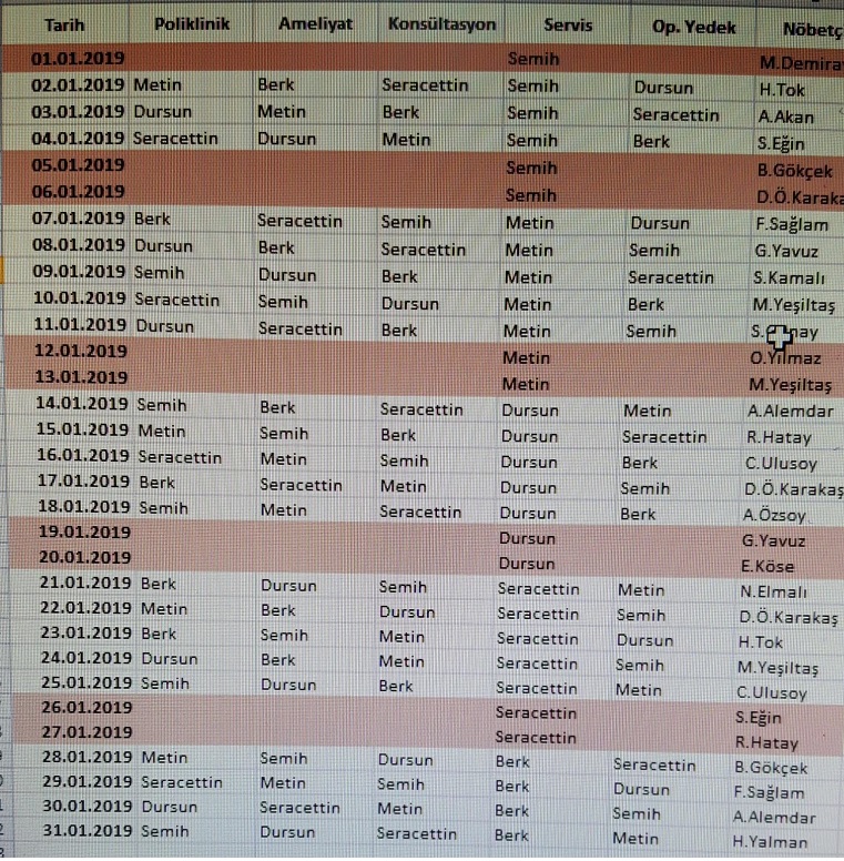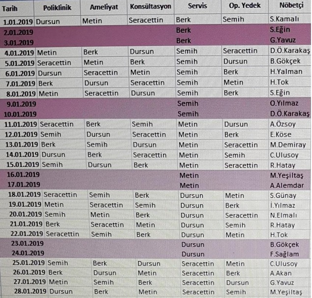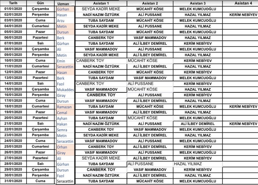 OCAK 2019 ASİSTAN NÖBET PROGRAMI