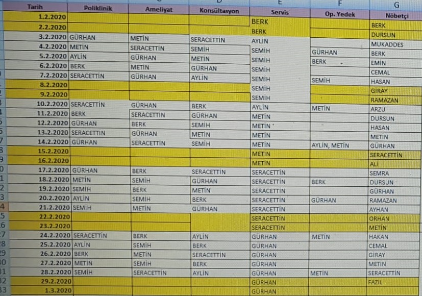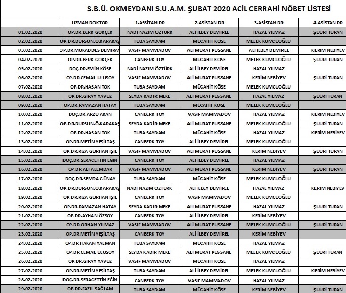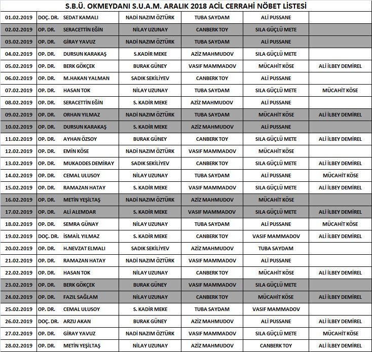 ŞUBAT 2019 ASİSTAN NÖBET PROGRAMI