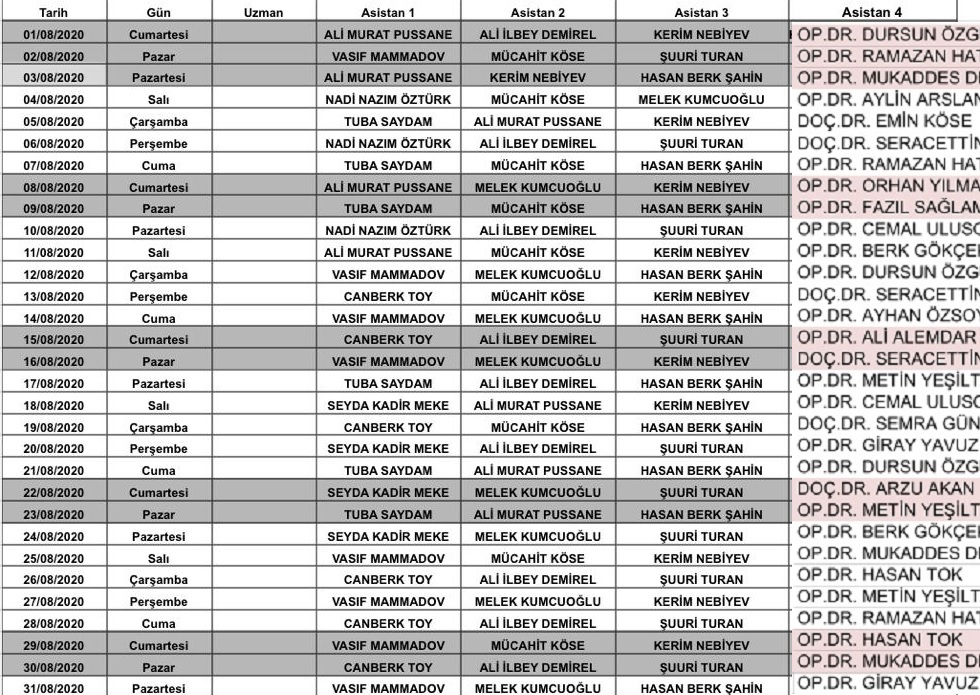AĞUSTOS 2019 ASİSTAN NÖBET PROGRAMI